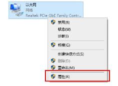3、然后在窗口中选中“以太网”右击选择“属性”打开。