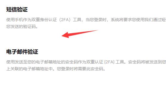 3、在其中找到短信验证和电子邮件验证。(根据你使用的绑定设备来选择)。