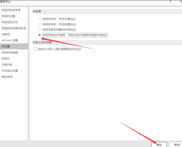 4、点击”启动宏设置“ 选项,点击确定就可以了。
