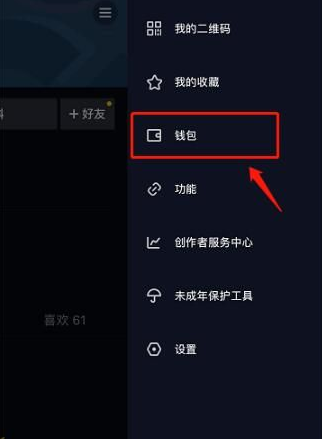 3、在弹出的选项里,点击【钱包】进入。