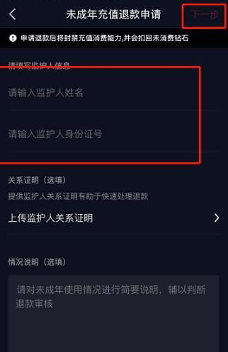 5、填写监护人信息,点击【下一步】。