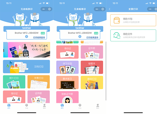 除此之外,兄弟畅享印提供了不少针对性应用,比如说从微信卡包打印发票,扫描身份证正反面,内置的“趣味打印”和“学习乐园”提供了大量模块,可以打印填色卡、贺卡、折纸不同内容,非常适合上网课的孩子。可以说,兄弟畅享印和Brother Mobile Connect是一对互补工具。