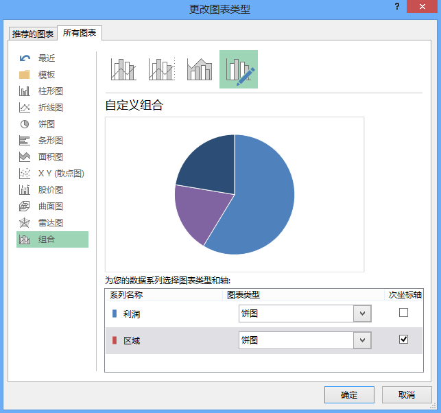 4、鼠标右键单击饼图,选择“更改系列图表类型”,将区域饼图绘制在“次坐标轴”,操作如下图所示。