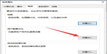 3、接着,在打开的系统属性界面中,点击用户配置文件一栏的“设置”按钮。