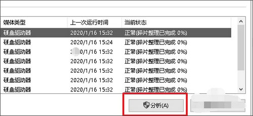 5、我们先选中一个驱动器,再点击下图框内分析按钮。