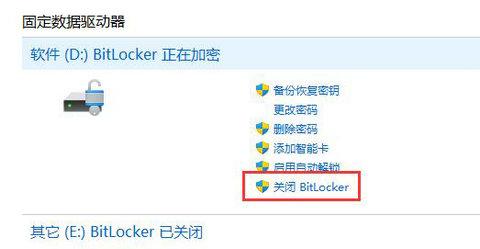 5、最后在弹出窗口再点击“关闭bitlocker”即可解决。