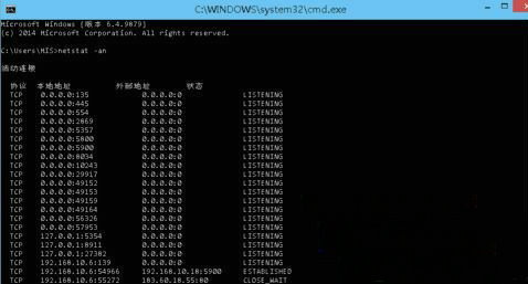 5、一定要保证3389这个端口没有被占用。使用【netstat -an】这个命令来查看。