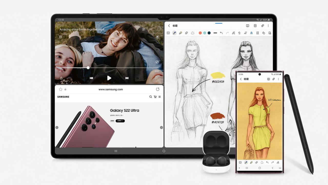 在出差时,我们常需要远程与同事或客户进行对接,线上视频因此就成了很重要的沟通手段。针对视频与通话会议,三星Galaxy Tab S8系列搭载了超广角的前置摄像头且支持自动构图功能,可在视频通话时收容更广阔范围的画面并将取景范围聚焦人物主体,搭配内置的三颗指向型麦克风,带来更加惊艳的收音效果。此外,三星Galaxy Tab S8系列的立体声四扬声器也能在身处户外时提供更出色的功放效果,确保彼此的线上语音畅通无阻。