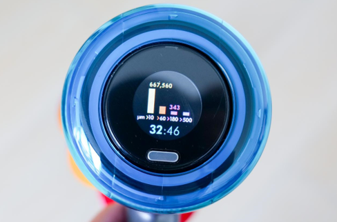通过V12 Detect Slim Nautik™洗地吸尘器的LCD屏幕还能看到,灰尘数据变得“可视化”了——其屏幕上有四个彩色条柱,对应不同尺寸的灰尘颗粒物。方便我们客观地知道吸入颗粒物的数量及大小,在每一次清洁过程中清晰了解到吸尘器的清洁表现。