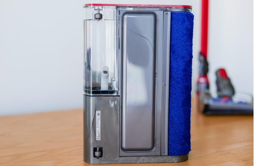 多次使用后我发现,Nautik™洗地滚筒配件小巧却大有乾坤——可以总结为“释水浸润、吸附、刮污”技术三部曲:首先是「释水浸润」步骤,沿着滚筒分布的了8个出水口,别看清水箱不大只有300ml的容量,它可以通过加压实现均匀喷射(每分钟精准释放18.75毫升清水),保证地面可以均匀润湿,进而实现滚筒覆盖之处的全幅清洁;其次是「吸附」,马达驱动的滚刷可以以每分钟900转的转速吸附地面上的碎屑及洒泼液体;最后来到「刮污」环节,230兆帕抗变型强度的不锈钢刮条可以持续从滚筒上刮下水和污垢并回收至污水箱中,加上戴森一向引以为傲的整机密封性,不用担心会出现二次污染。