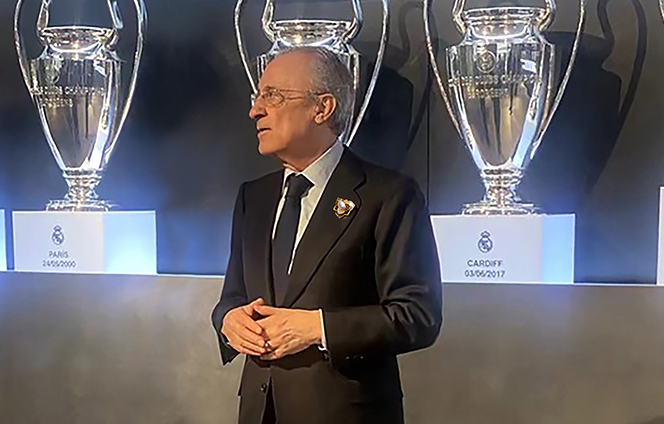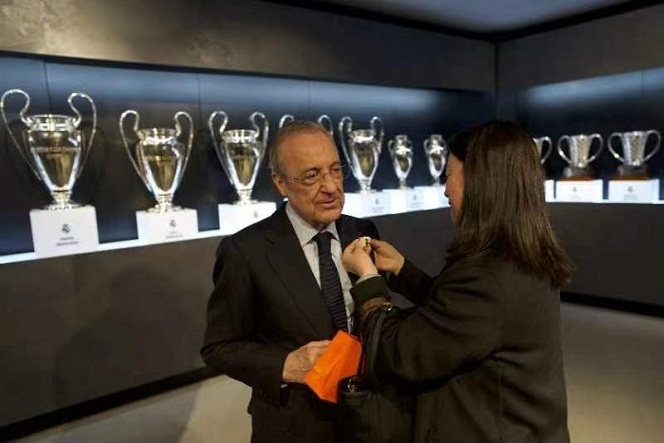 (皇马主席弗洛伦蒂诺佩戴勒杜鹃花胸针图)