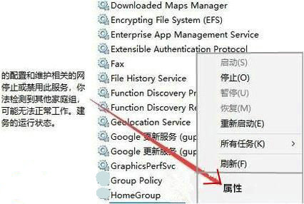6、使用同样的方法,将HomeGroup Listener服务项也禁用即可,这样我们就彻底禁用了Win10家庭组功能了。如图所示: