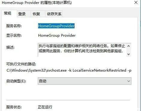4、HomeGroup Provider 的属性(本地计算机)窗口,点击停止,停止该服务的运行;如图所示: