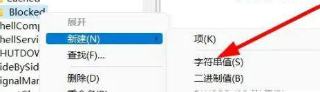 5、右键点击设置选项,点击选择新建字符串值选项。