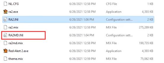 4、接着我们来到游戏的安装目录,双击打开其中的“RA2MD.INI”配置文件。
