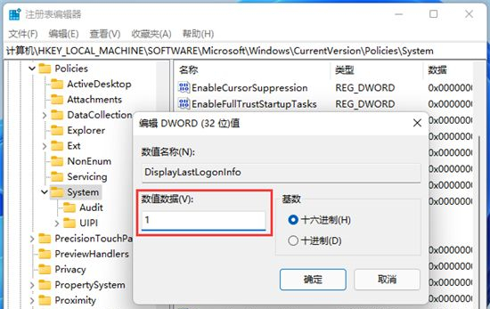 如果想关闭登录信息显示,只需要将注册表中的 DisplayLastLogonInfo 数值数据修改为 0,或者直接删除即可。