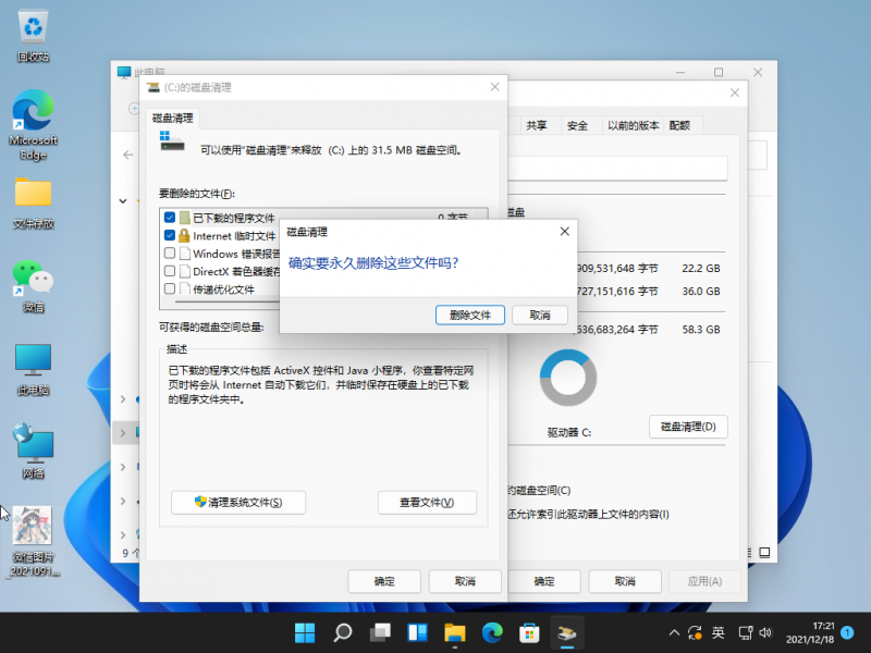 5、确定永久“删除文件”即可。耐心等待清理完成。