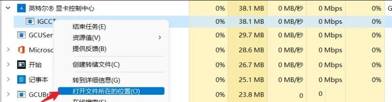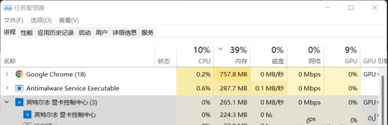 2、切换回【进程】选项卡,找到并点击展开【英特尔显卡控制中心】。