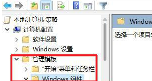 2、展开“计算机配置”—“管理模板”—“Windows组件”。