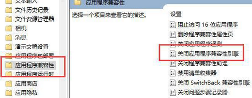 3、找到“应用程序兼容性”,双击打开其中得到“关闭应用程序兼容性引擎”。