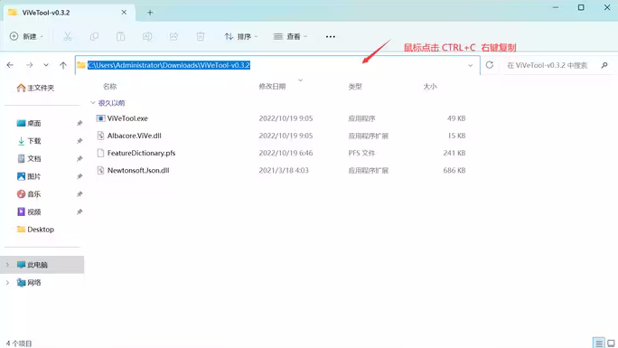 2、复制vivetool下载的位置。