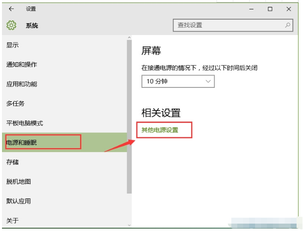3、接着选择“电源和睡眠”,并鼠标点击“其他电源设置”。