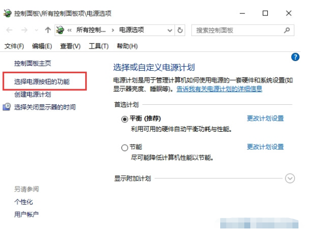4、然后点击“选择电源按钮的功能”链接。