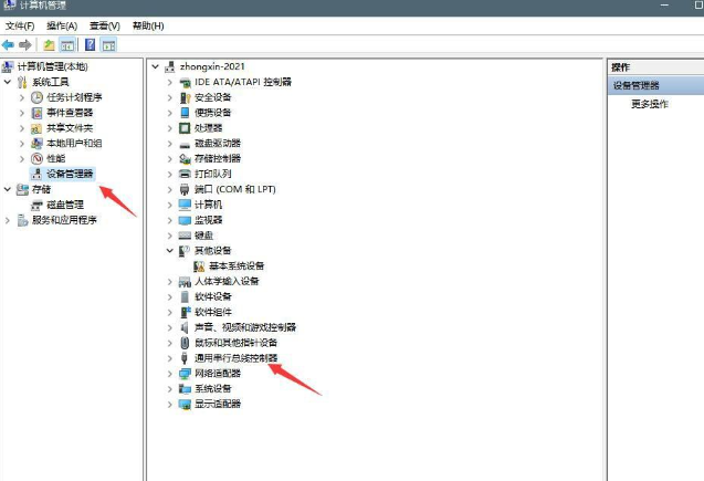 2、计算机管理窗口,左侧点击【设备管理器】。