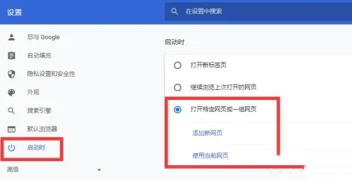 3、设置主页,在“启动时”中,重新设置需要的主页即可。