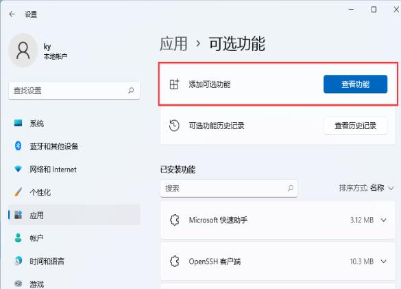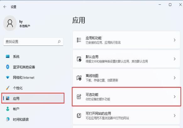 3、设置窗口,左侧边栏,点击应用,右侧点击可选功能(你的设备的额外功能)。