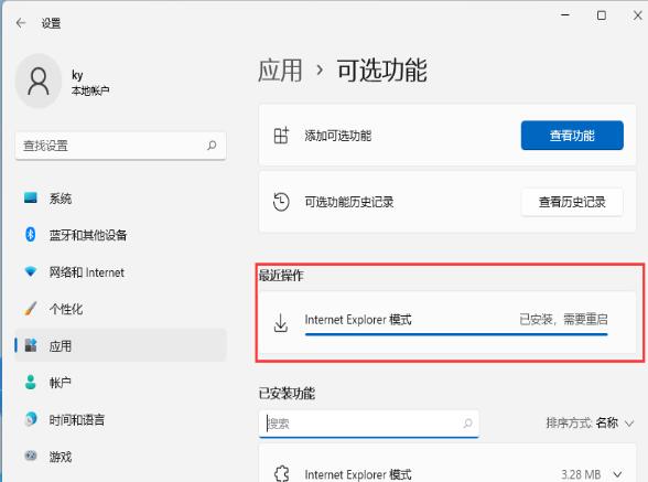 7、Internet Explorer 模式功能完成安装后,还需要重启电脑才能生效。