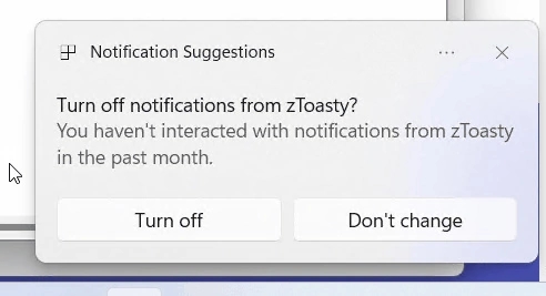 为了尽量减少通知 toast 的干扰,微软将通过检测用户是否正在与 toast 交互,并提供关闭此类应用的 toast 横幅的建议。当然,这只会阻止横幅出现,您仍然可以在通知中心找到相关提醒。