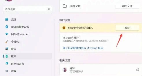 4、进入账户信息,如果你没登陆微软账户,直接登录一下,登陆了就点击验证信息,如下图所示