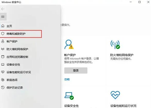 3、Windows 安全中心窗口,左侧边栏,点击病毒和威胁防护。