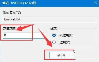 4、最后,在弹出的窗口中,修改“数值数据”值为0,点击确定,重启电脑即可。
