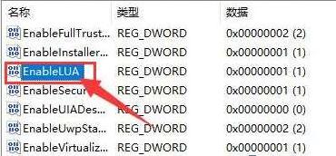 3、然后,在对应的右侧界面中,找到并双击打开“EnableLUA”值。