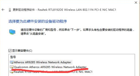 6、选择第二项“qualcomm atheros ar9285“。