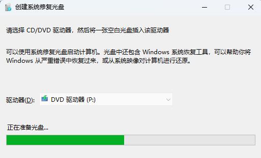 8、完成后,一般会提示【是否要创建系统修复光盘】,它需要 CD/DVD 作为存储设备。