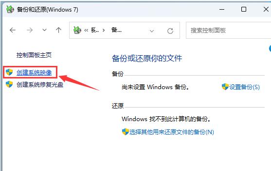 4、备份和还原(Windows 7)窗口,左侧点击【创建系统映像】。