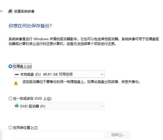 5、选择要存储系统映像备份的位置,然后点击【下一页】。