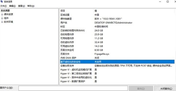 2、在右侧列表中找到【基于虚拟化的安全性】可以查看开启的状态。