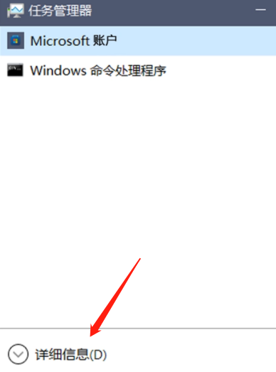 2、然后就会打开任务管理器,接着我们点击任务管理器的“详细信息“