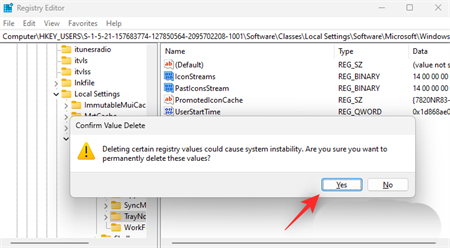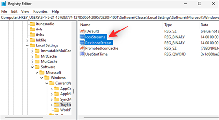 SoftwareClassesLocal SettingsSoftwareMicrosoftWindowsCurrentVersionTrayNotify