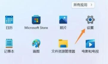 2、打开的开始菜单中,找到并点击所有已固定应用下的【设置】。
