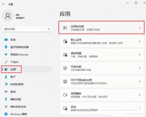 3、Windows 设置窗口,左侧边栏点击应用,右侧点击【应用和功能(已安装的应用,应用执行别名)】。