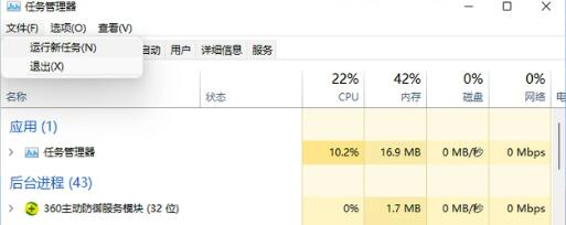 4、如果不小心结束了Windows 资源管理器进程,也可以在任务管理器窗口,点击左上角的【文件】,在打开的下拉项中,选择【运行新任务】。