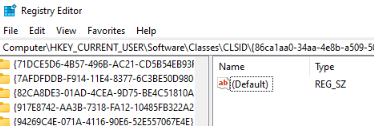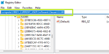 3、在注册表中导航至HKEY_CURRENT_USER\SOFTWARE\CLASSES\CLSID\。