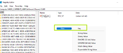 4、在CLSID下创建一个名为{86ca1aa0-34aa-4e8b-a509-50c905bae2a2}的新注册表项。您可以通过右键单击右侧窗格并选择“新建”-》“项”然后输入正确的文件夹名称来创建密钥。