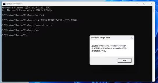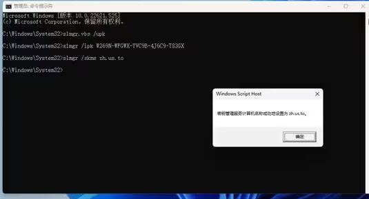 弹出窗口提示:【密钥管理服务计算机名成功的设置为 zh.us.to】