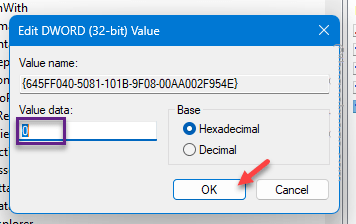 b.只需将值命名为“{645FF040-5081-101B-9F08-00AA002F954E}”。